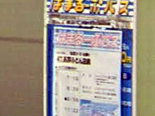 青山剛昌ふるさと館は、青山さん(名探偵コナンの作者)の出身地にあるマンガ・アニメミュージアムです。左の写真にある横に長い看板のようなもの全体がバス停のようです。バス停ポールとしてみると日本最大級かも。何かの案内表示の他、バス時刻表が4枚あるように見えます。 GoogleStreetView |