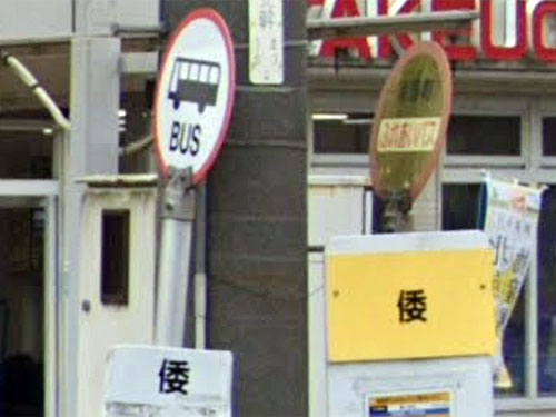 1文字バス停です。住所になっています。漢字としては、「古代、中国から日本を呼んだ名。」とのこと。調べましたがこの字が使われている由来は分かりませんでした…。 GoogleStreetView |