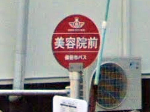 シンプルなバス停名です。ただ、ストビュで見回しても美容院が見えません。昔やっていたっぽい建物はありますが…。