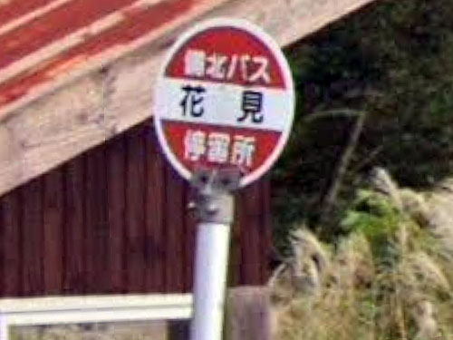 長野県の花見バス停は「けみ」と読みますが、ここでは「はなみ」です。花見が公的住所になっています。後醍醐天皇の隠岐配流に関係した地名という説があるそうです。 GoogleStreetView |