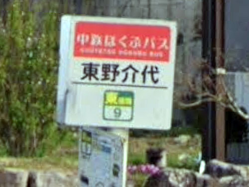 姓名のように読めるバス停です。「ひがしの・すけよ」さん。ちょっと苦しいでしょうか…。読みは東のけだで、難読でした。昔は野介代村があったそうです。野介代は江戸期からある地名とのことですが、由来は分からないそうです(デジタル岡山大百科)。 GoogleStreetView |