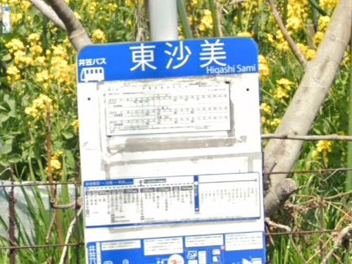 姓名のように読めるバス停です。「ひがし・さみ」さん。「沙は砂の意味で、美は美しい事を指します。 なので沙美という地名は美しい砂浜を有する事に由来 しています」(岡山の街角から)。沙美海岸は日本で初めて海水浴場として施設(仮小屋)が開設された海岸なのだそうです。 GoogleStreetView |