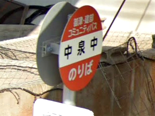 「中」がつく「山本山」形式のバス停です。公的住所は北区御津中泉なので、「中泉・中」なのでしょう。近くに中泉公会堂があります。 GoogleStreetView |