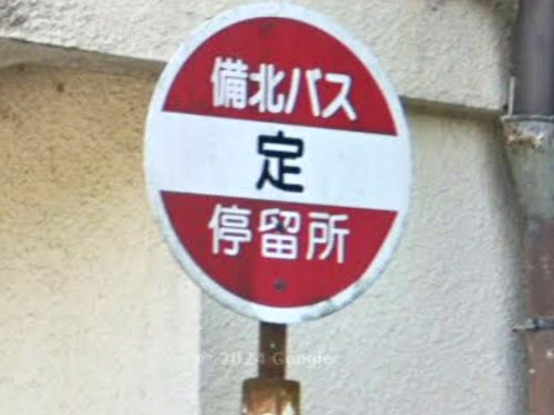 「垣」バス停はレアで、今のところここしか把握できていません。昔は垣村といったそうです。由来は「いろんなかき説があって難しい」(高梁市公式HP)とのこと。なお、2024年のバス停ポールはすっかり草に覆われてしまっています(笑)。 GoogleStreetView |