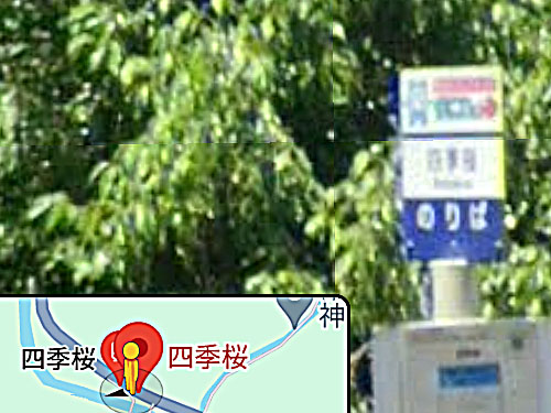 四季桜は桜の種類の1つで、秋から春まで断続的に咲くのが特徴です。特定の桜の種類がバス停の名前になっているのは珍しいと思います。ここは「神代四季桜」として、ちょっとした名所になっているそうです。 GoogleStreetView |