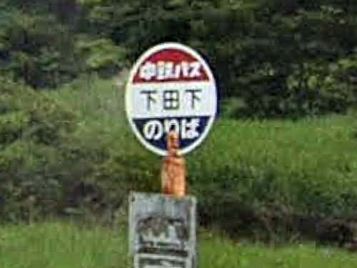珍名バス停としては比較的知られている場所です。山から流れる水の音にちなんで名付けられたそうです。 GoogleStreetView |