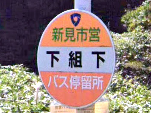 「上上」と同じ字が続く珍しい名前です。「かわかみかみ」と口に出して言うとリズムがいい感じです。最新のストリートビューではバス停標が見えないのですが、美作市公式ページの2023年の時刻表にはこのバス停が掲載されています。ちなみに近くに「川上下」バス停があります。更にちなみに「下下」と「下」が続くバス停は全国的にないようです。 GoogleStreetView(2019) |