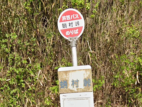 「蛸」の字がつく数少ないバス停の1つです。蛸村とはユニークな名前ですが、ここはさほど海沿いではありません。昔、峠の向こうの笠岡の漁港から魚を運んでいた魚売りの売り物の蛸が這い出て土の中に逃げ込み、後にたびたび地震や地すべりが起こるようになったため、人々が蛸村峠と名付けたそうです。 GoogleStreetView |