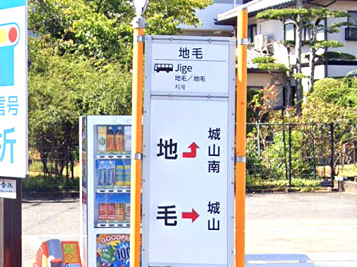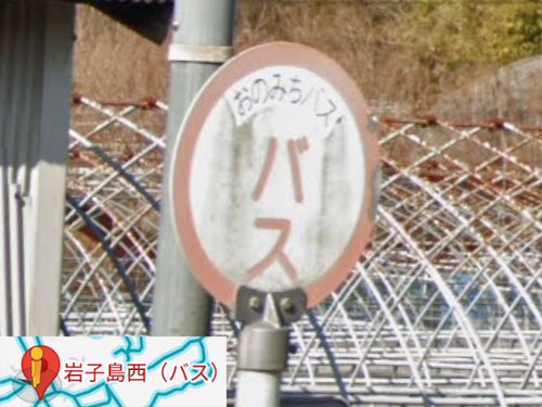 少し難読です。姓名のようにも見えるバス停です(いがかずしさん)。廃止されたJR三江線の駅でもありました(コミック「まほちゅー」シリーズの登場人物「伊賀 和志(いが かずし)」はこの駅名が由来)。備北交通のバス停ポールはシンプルで細いので、(ストビュの)証拠写真が残しづらいです…。伊賀和志の由来は、「江の川が蛇行するさまを示した「いかわち」が基になったと記されているとする説、よく洪水を起こす「いからせ(怒瀬)」から名付けられたという説などがあります」(NPO法人江の川鐵道)。 GoogleStreetView |