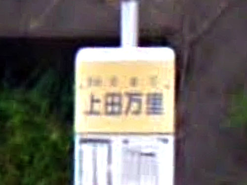 姓名のように読めるシリーズです。「うえだまり」さんではなく、「かみたまり」でした。公的住所が「田万里町」になっています。最近のバス停標の名前がかすれて見えづらいので、2011年のGoogleStreetViewを参照しています。他に「中田万里」(なかたまり)バス停もあり、こちらはズバリ人名のように読めますね。 GoogleStreetView(2011) |