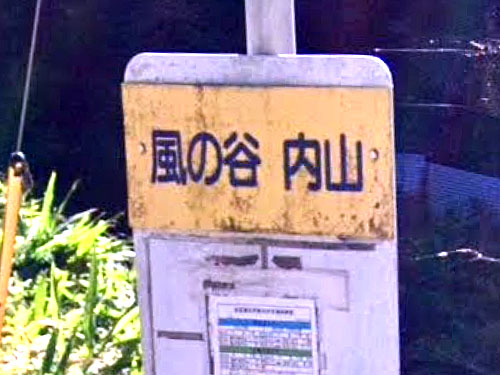 「風の谷のナウシカ」の風の谷は「かぜのたに」と読みますが、ここでは「かぜのや」でした。由来は分かりませんでした…。コミュニティバスの始発・終着バス停となっています。 GoogleStreetView |
