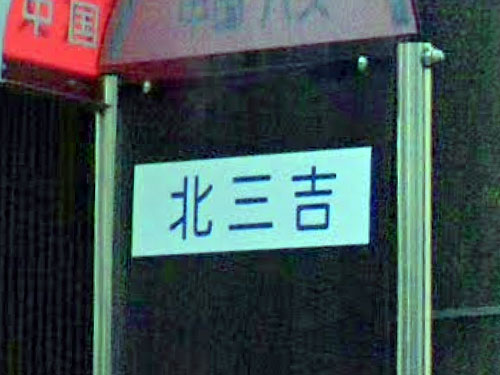 姓名のように見えるバス停です。「きた・さんきち」さん。福山市三吉町にあります。 GoogleStreetView |