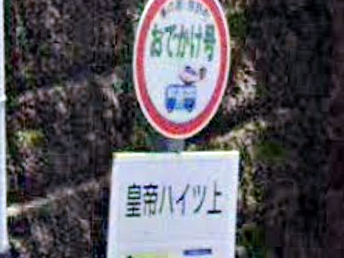 広島市の隣、熊野町にあります。「皇帝」とはとても厳かですが、皇帝+ハイツでかなり庶民的に聞こえます。皇帝と名の付くバス停は全国的に見ても、ここの皇帝ハイツ関連以外にはないようです。(皇帝ハイツ入口、上、中、下)。近くに皇帝神社があり、住宅街が皇帝ハイツと名付けられたとのことです。皇帝神社の祭神である皇帝神は鬼子母神のことだそうです。ちなみに皇帝神社の所在地は熊野町呉地区字皇帝神で、字名も堂々としています。 GoogleStreetView |