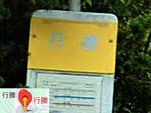 珍しい漢字ですね。この漢字が使われているバス停は他に2つしか把握していません(1つは上棡)。「棡」はコウと読み、1文字ではならがしわの木を表します。棡葉と書いてゆずりはと読むことがあります。公的住所にはなっておらず、由来は分かりませんでした…。 GoogleStreetView |