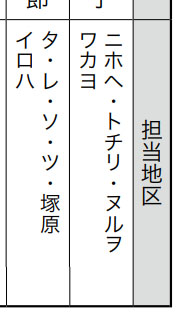 「イロハ」バス停には続きがありました。バス停としては「ニホヘトチリ」という文字列の続きである「ヌルヲ」があり、おそらく2つ先の「タ組」もその続きなのだと思います。バス停には関係しない地区表には、 イロハ、ニホへ、トチリ、ヌルヲ、ワカヨ、タ、レ、ソ、ツ 地区が掲載されています。明確な由来は分かりませんでした…。 GoogleStreetView |
