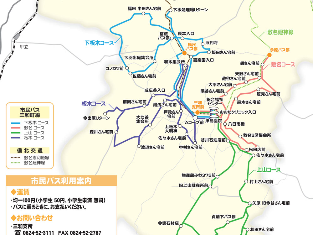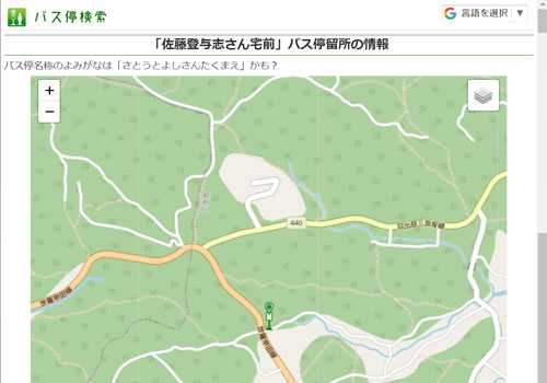 | 広島県 | 「○○さん宅前」が21個 | 三次市三和町 | ![]() 市民バス三和町線の運行案内(PDF、三次市公式ページ) ![]() 「佐藤△△△さん宅前」というフルネームのバス停の形跡も…(バス停検索) |