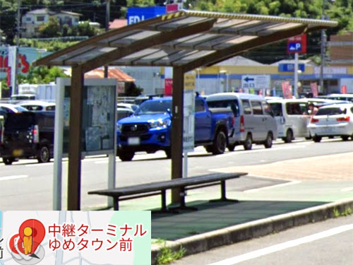 | 広島県 | 中継ターミナルゆめタウン前(ちゅうけいたーみなるゆめたうんまえ) | 江田島市 | ![]() GoogleStreetView |