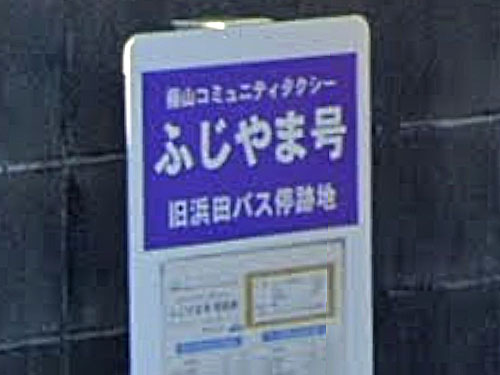 浜田は公的住所になっています。その「浜田」に、「旧」+「バス停」+「跡地」という状況を表す単語3つがついた珍しいバス停です。 GoogleStreetView |