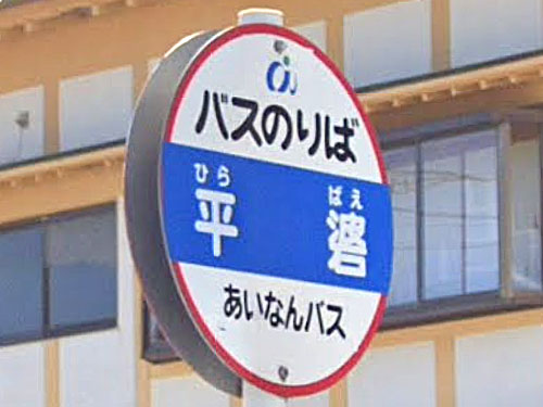 「碆」は主に、和歌山から四国、九州にかけて使用される地域文字で、岩礁を表す「はえ」にあてられているとのこと。漢字の「碆」は「石のやじり」を表すものの、「波の下に石を配する字体が礁に適応すると思われて…あて字に…」という説などがあるそうです(以上方言漢字事典)。「はえ」の他、「はい、はや、ハ」と読むそうです。「平碆の地名の由来は、平らな碆(岩礁)のあるところからつけられた地名と考えられ…」(えひめの記憶)。 GoogleStreetView |