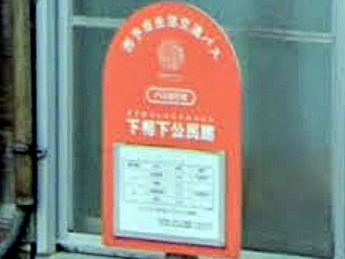 「蒋」は「ショウ/まこも」と読み、まこもはイネ科の多年草とのこと。「蒋」が使われたバス停はレアです。昔は蒋渕村があったそうですが、由来は不詳(Wikipedia)。薦淵とも書くそうです。 GoogleStreetView |