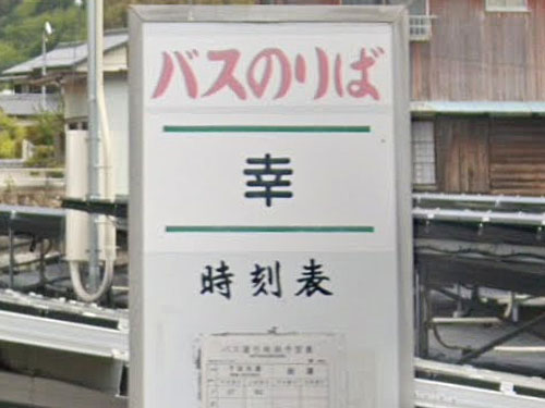 「幸」1文字のバス停はレアで、ここしか把握てきていません。いいことありそうですね。由来は分かりませんでした…。幸港という港があります。 GoogleStreetView |