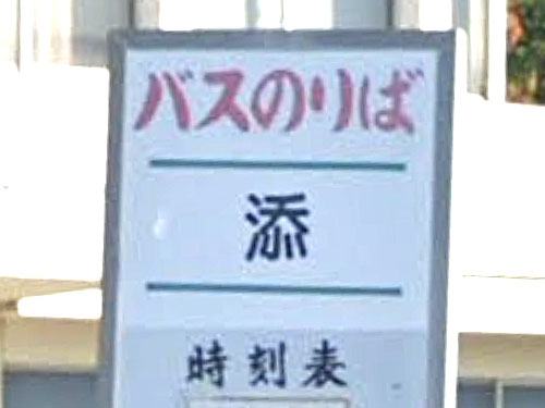 1文字バス停「添」で、全国でここしか把握できていません。由来は分かりませんでした…。 GoogleStreetView |