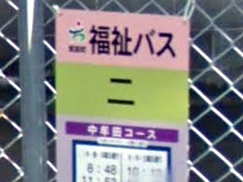 数少ない「掲示板貼り出し型」のバス停で、地区の「人名表」や川柳募集のチラシと一緒に時刻表が掲示されています(笑)。「人名表」が付くバス停は今のところここしか知りません。近くにある「山王三丁目百段階段」バス停の百段も、なかなかインパクトがあると思います。 GoogleStreetView |