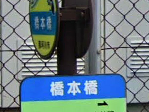 「山本山」形式のバス停です。「橋」の字が繰り返されるバス停は少ないです。バス停としての読みは分かりませんでしたが、橋には「はしもとばし」の読みが書いてあったので、それでよいように思います。 GoogleStreetView |