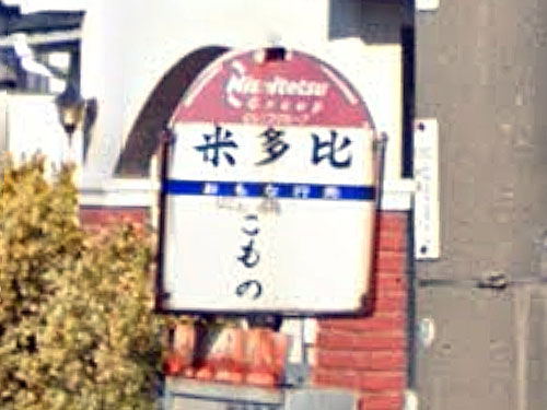 「蜷」は「ケン/にな」と読み、「にな。細長い巻貝の総称/かがまる。まがる」とのことです。この字が使われるバス停は知る限りでは全国で7つです。ここでは蜷田のつく地名が公的住所になっています。室町時代の文書に記録があるそうです。由来は分かりませんでした…。 GoogleStreetView |