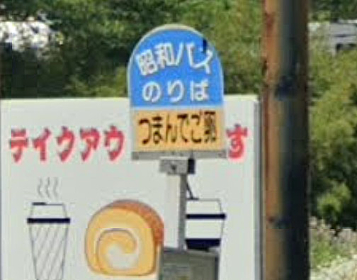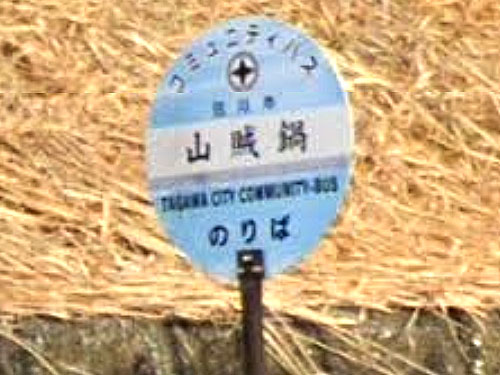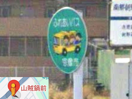 ふれあいバスのバス停名のほうは「山賊鍋前」だそうです。バス停名がストリートビューに写っていないのが残念です。後ろに大きなお店があります。(ネーミングライツかどうかは分かりません。) GoogleStreetView |