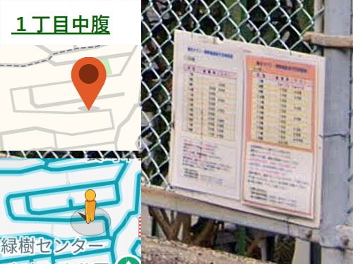 バス停名は身近な印象ですし、物置の壁に貼り付けた感じの素朴なバス停にほっこりします。 GoogleStreetView |