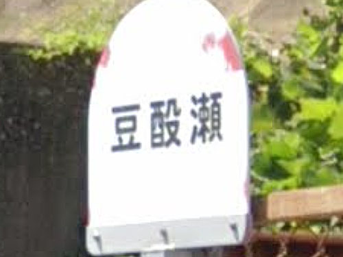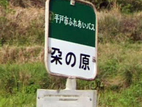 「朶」は「ダ・タ/えだ・しだ-れる・うご-かす」と読み、「たれさがっているもの/うごかす/ひとふさ」という意味もあるとのこと。ここは全国で唯一と思われる「朶」が使われたバス停です。「朶の原町」が公的住所になっています。名前の由来は分かりませんでした…。 GoogleStreetView |