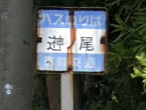「𨕫」という珍しい漢字が使われていますね。国字ですので日本で作られた漢字です。長崎県の他、岡山県や宮崎県などで使われるとのこと。「辵」+「神」、神域と俗世界を区切る境界線が由来で、「しめ」と読み、「注連」の意味とのこと。 ここでは字𨕫ノ尾という住所になっているそうです。この地域発祥で、𨕫野(しめの)さんという名字もあるそうです。𨕫野さんが電話帳に掲載されていたおかげで、2000年にJIS第4水準に登録された字だそうです。バス停の字体はわざわざ作った感が満載です。GoogleMapsの検索では「しめはしんにょうに神」と表示されます。なお、地名の由来は分かりませんでした…。 (この行の「𨕫」という漢字はJIS第4水準のため、お使いの環境によっては表示されないかも知れません。バス停の写真の字体をご覧ください。) GoogleStreetView |