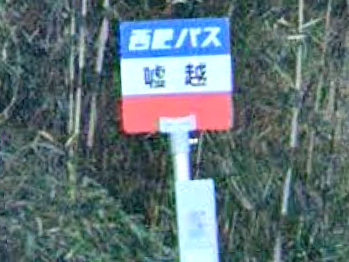 「嘘」という字がついた、全国唯一のバス停と思われます。はっきりとした由来は分かりませんでした…。 GoogleStreetView |