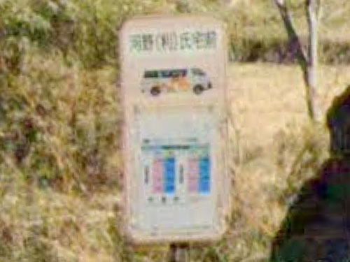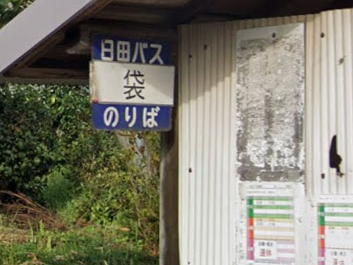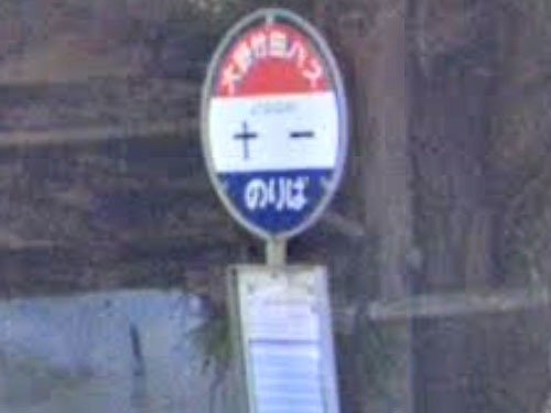 山間部にあるバス停です。はっきりとした由来は分かりませんでした…。GoogleMapsでは「閉業」となっていますが、Navitimeでは時刻表などが掲載されています。 GoogleStreetView |
