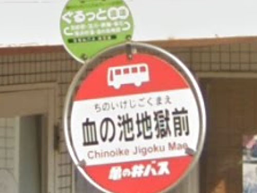 日本一温泉の源泉数が多い別府では、源泉のことを「地獄」と呼ぶことがあります。「血の池地獄」は中でもよく知られる「地獄」ですが、こうして字面で見ると圧迫感がすごいです(笑)。他に「海地獄前」「紺屋地獄前」「地獄原・ひょうたん温泉」バス停も。 GoogleStreetView |