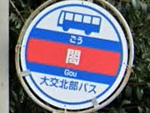「閤」は「コウ/くぐりど・へや」と読み、「くぐりど。大門のわきの小門/へや。ねや/宮殿。ごてん。たかどの。役所」という意味があります。「閤」が公的住所になっています。「閤」が使われるバス停はここだけのようです。昔は閤村だったそうで、郷村と書かれたこともあるとのこと。名前の由来は分かりませんでした…。 GoogleStreetView |