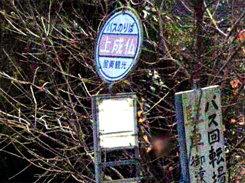 「成仏」という字がついています。バス回転場になっているようです。周辺に成仏寺というお寺があります。この他、「下成仏」「成仏公民館前」バス停があります。 GoogleStreetView |