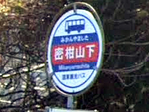 蜜柑山の下という素朴な名前です。地理院地図で見ると、バス停の北側にかなり広い果樹園の山が広がっているのが分かります。 GoogleStreetView |