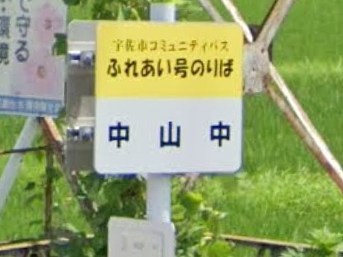 同じ宇佐市でもう1つ「山本山」形式のバス停です。公的住所は中山なので、「中・山中」ではなく「中山・中」なのでしょうね。 GoogleStreetView |