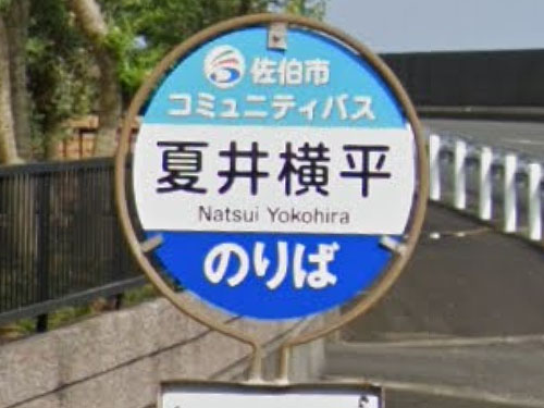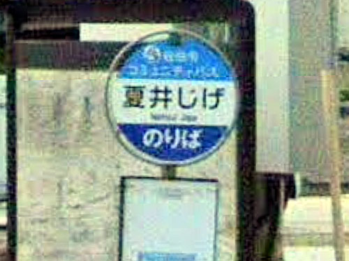 姓名のように見えるバス停です。「なついよこへい」さん。本当の読みは「なついよこひら」でした。夏井も横平も由来は分かりませんでした。 GoogleStreetView |