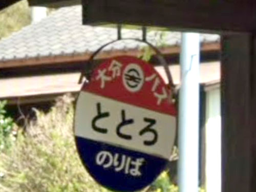 「轟」と書いて「ととろ」と読む、実在する「ととろ」集落です。現在はコミュニティバスのバス停です。 ここを通る大分バスの路線は廃止されましたが、バス会社の厚意で現在もバス停標識が残されているそうです。九州に多い、待合室つり下げ型の丸板です。 トトロ関連のイラストがいくつか置いてありますが、誰が置いたかはよく分からないそうです。 GoogleStreetView |