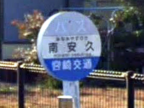 姓名のように読めるバス停です。みなみやすひささん。他に、上安久、下安久バス停があります。 GoogleStreetView |