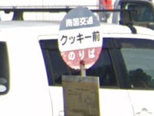 「クッキー前」とは、知らない人にとっては可愛いバス停に思えますね。クッキー姶良店というスーパーが有ったそうなのですが、GoogleMaps上は閉業と書かれています。今はCOOPのスーパーがあるようです。バス停の名前が取り残された形かと思います。 GoogleStreetView |