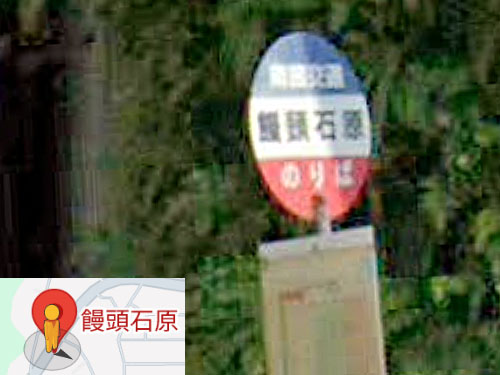 「饅頭・石原」ではなく「饅頭石・原」のようです。近くに饅頭のような形の石があるのが由来と思われます。なお、現在のJR上伊集院駅は開業時は饅頭石駅といったそうです。 GoogleStreetView |