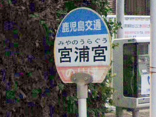 「山本山」形式のバス停で、「宮」の字が繰り返されるのは珍しいです(全国的には、東西南北上中下山川が多い)。「初代・神武天皇はここから東征に出発! 神々の子孫である初代・神武天皇が仮住まいをしていた地に建つ、歴史ある式内社」(鹿児島県神社庁)。
