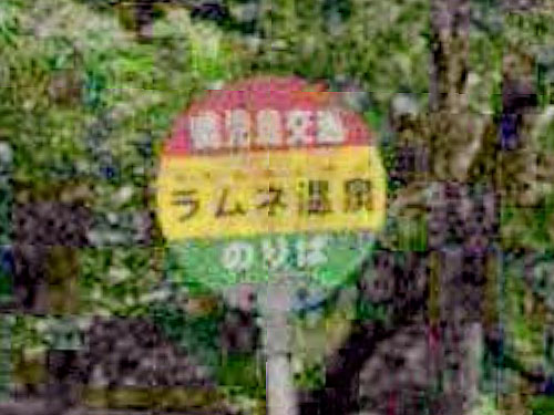 この近くにはラムネ温泉旅館があったそうですが、数Km移設して「ラムネ温泉千寿の里」として営業しているとのこと。そのためでしょうか、バス停名は「新川渓谷」に変わっていました。その名の通り、炭酸を含むシュワシュワな温泉だそうです。