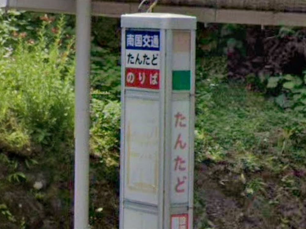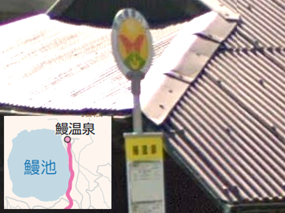 上記の鰻温泉・鰻池に向かう道路の分岐点にあるバス停です。 GoogleStreetView |