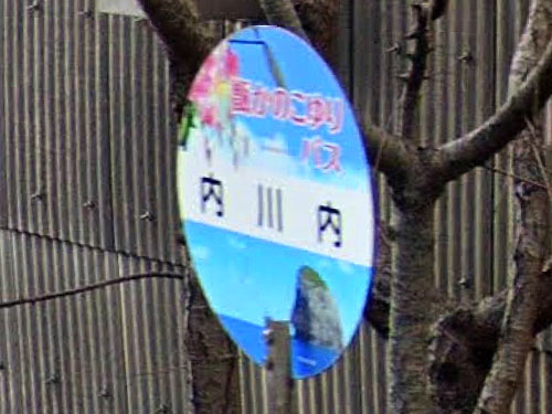 「山本山」形式のバス停です。「内」の字が前後に付く例は珍しいです。名前の由来は分かりませんでした…。 GoogleStreetView |