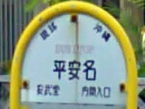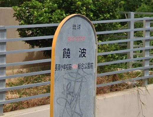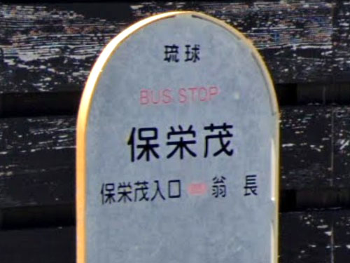 沖縄県ではかなり長い方のバス停名です。漢字等20文字、かな24文字です。バス停標が拡大できないのが残念…。 GoogleStreetView |